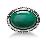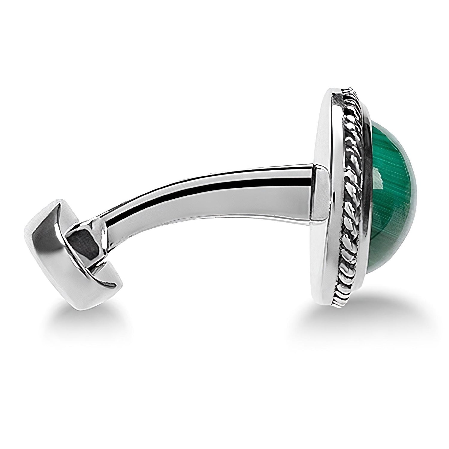 MANCUERNILLAS OVALES EN CUERDA DE PLATA Y MALAQUITA