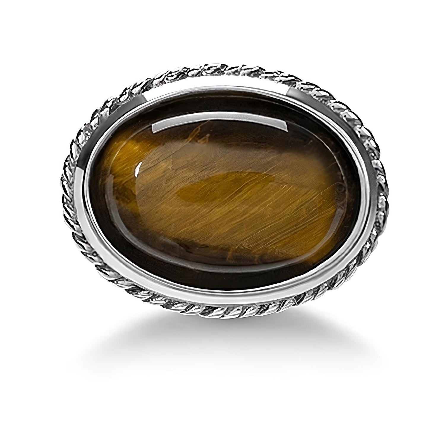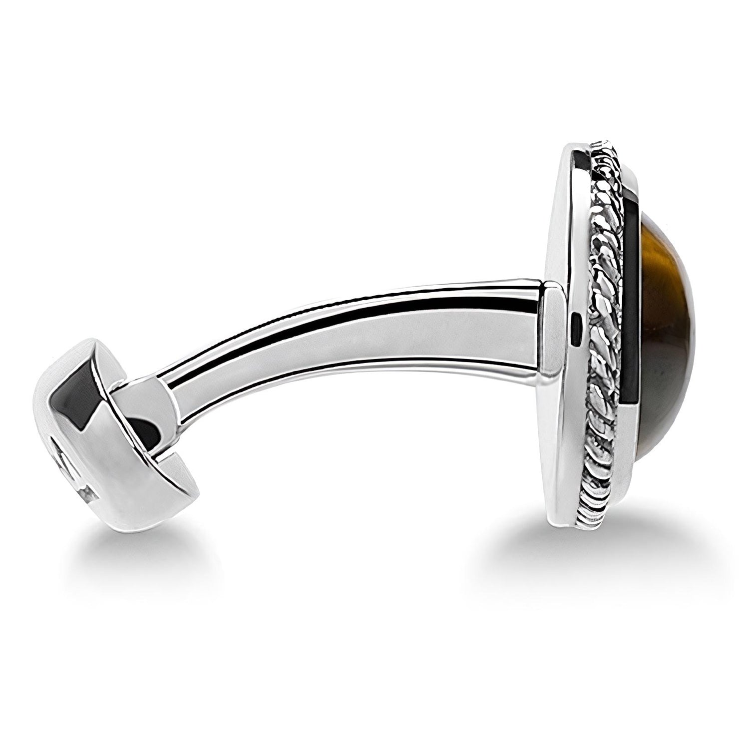 MANCUERNILLAS OVALES EN CUERDA DE PLATA Y OJO DE TIGRE