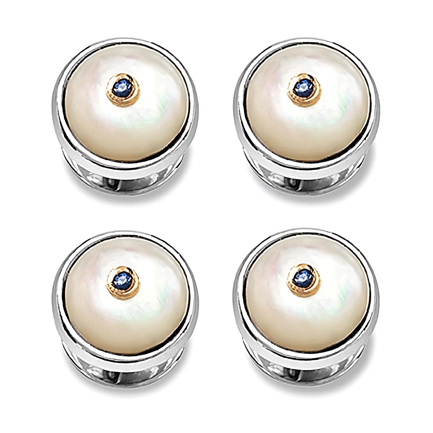 SET MANCUERNILLAS Y BOTONES PARA SMOKING EN MADREPERLA Y ZAFIRO