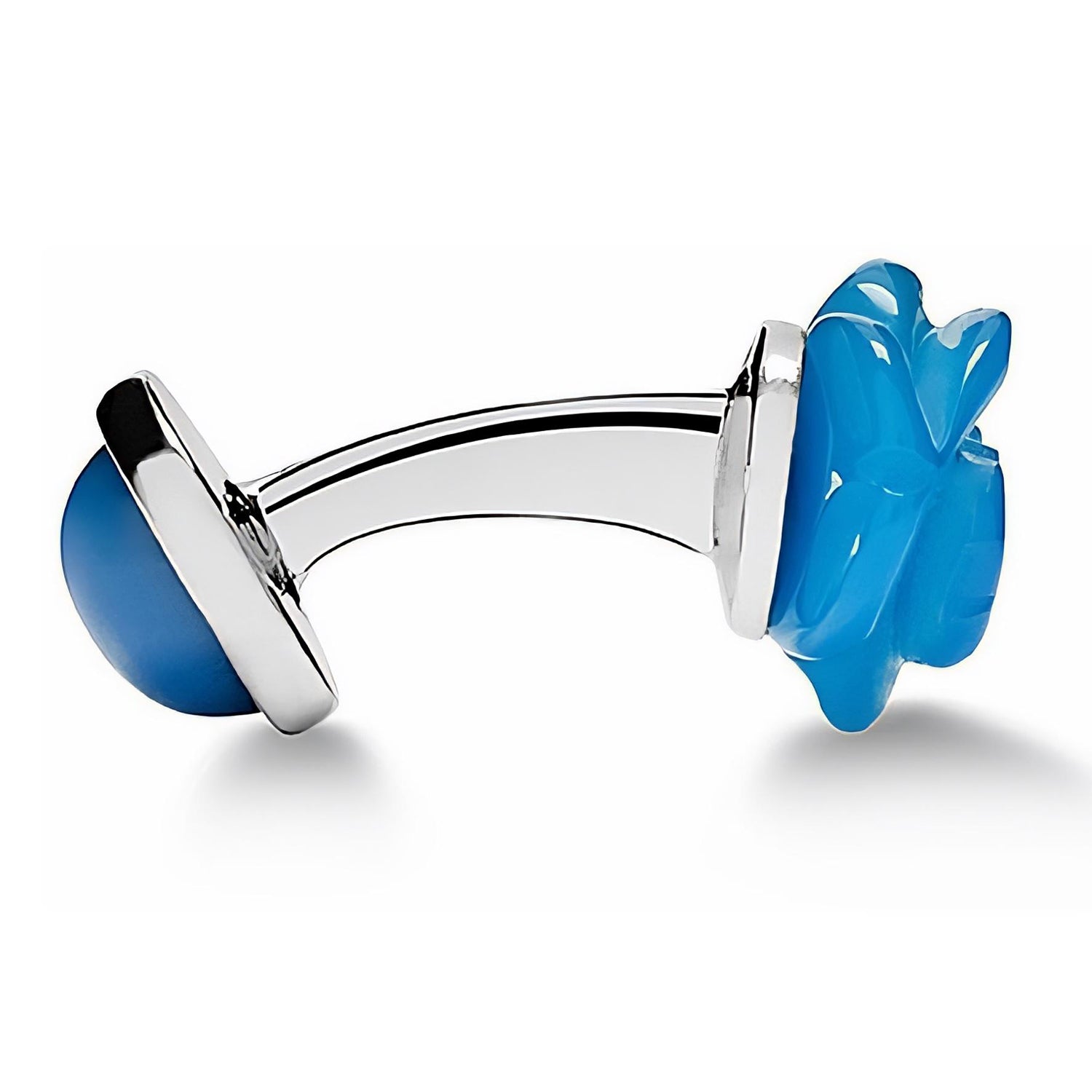 MANCUERNILLAS CON FLOR DE ROSA EN ÁGATA EN COLOR AZUL