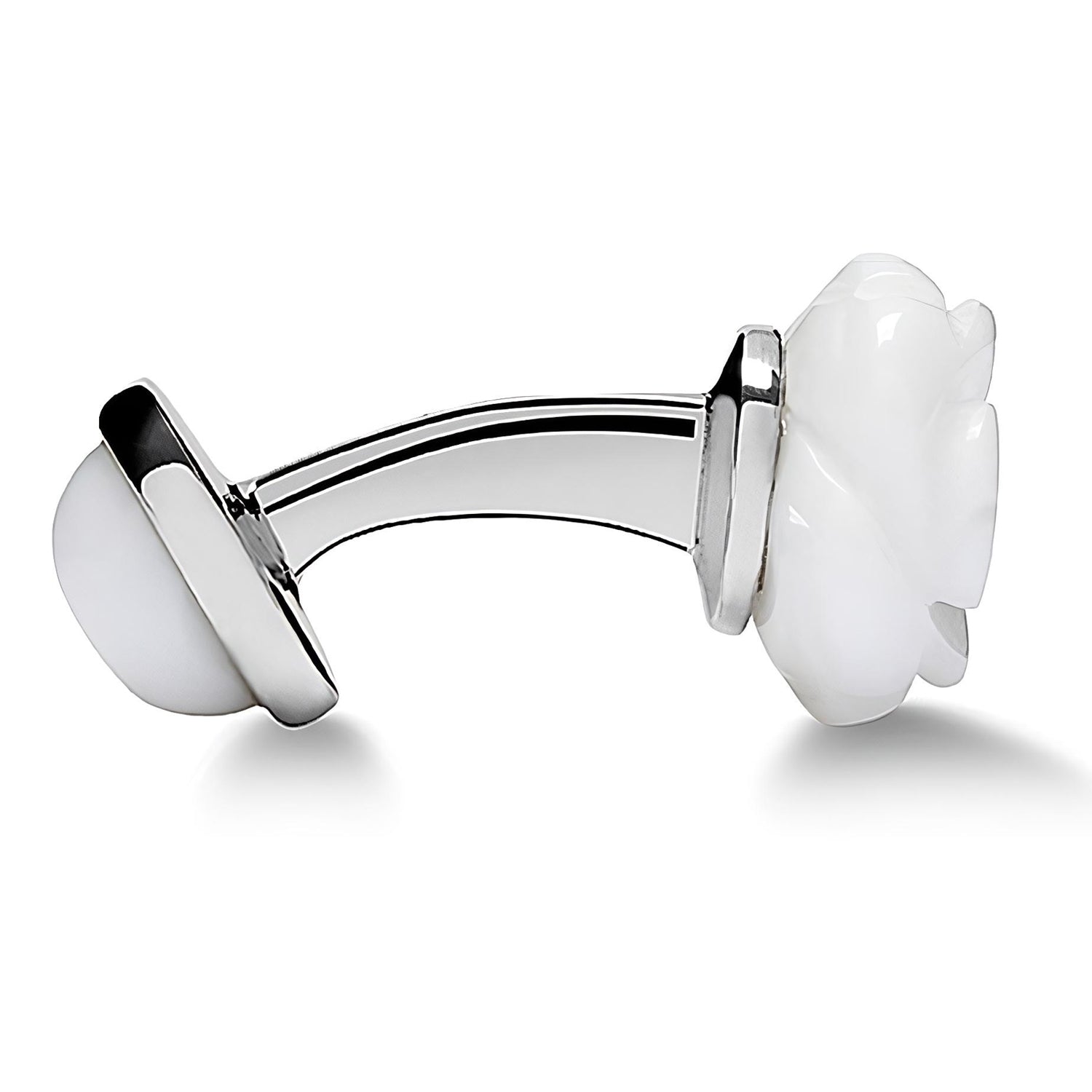 MANCUERNILLAS CON FLOR DE ROSA EN ÁGATA EN COLOR BLANCO