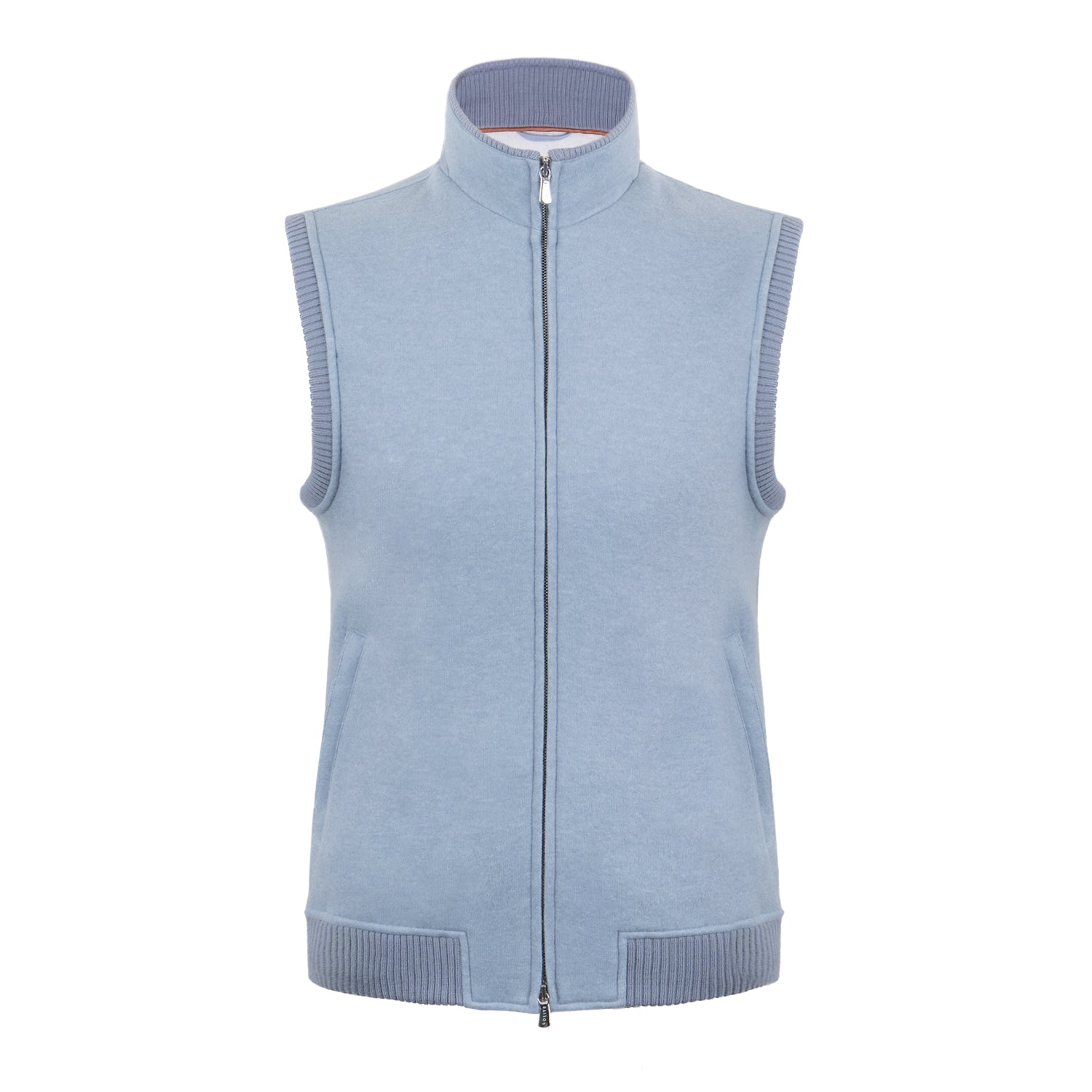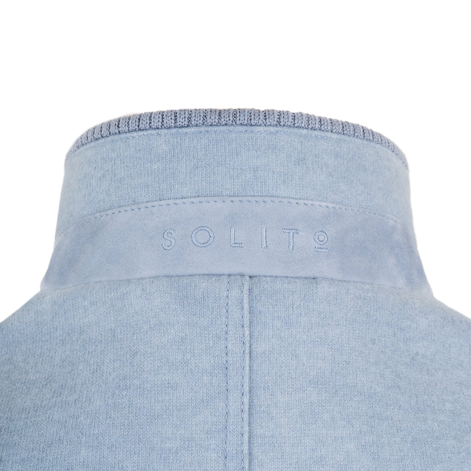 CHALECO EN JERSEY DOUBLE CON DETALLES EN SUEDE CON INTERIOR GRIS EN AZUL CIELO