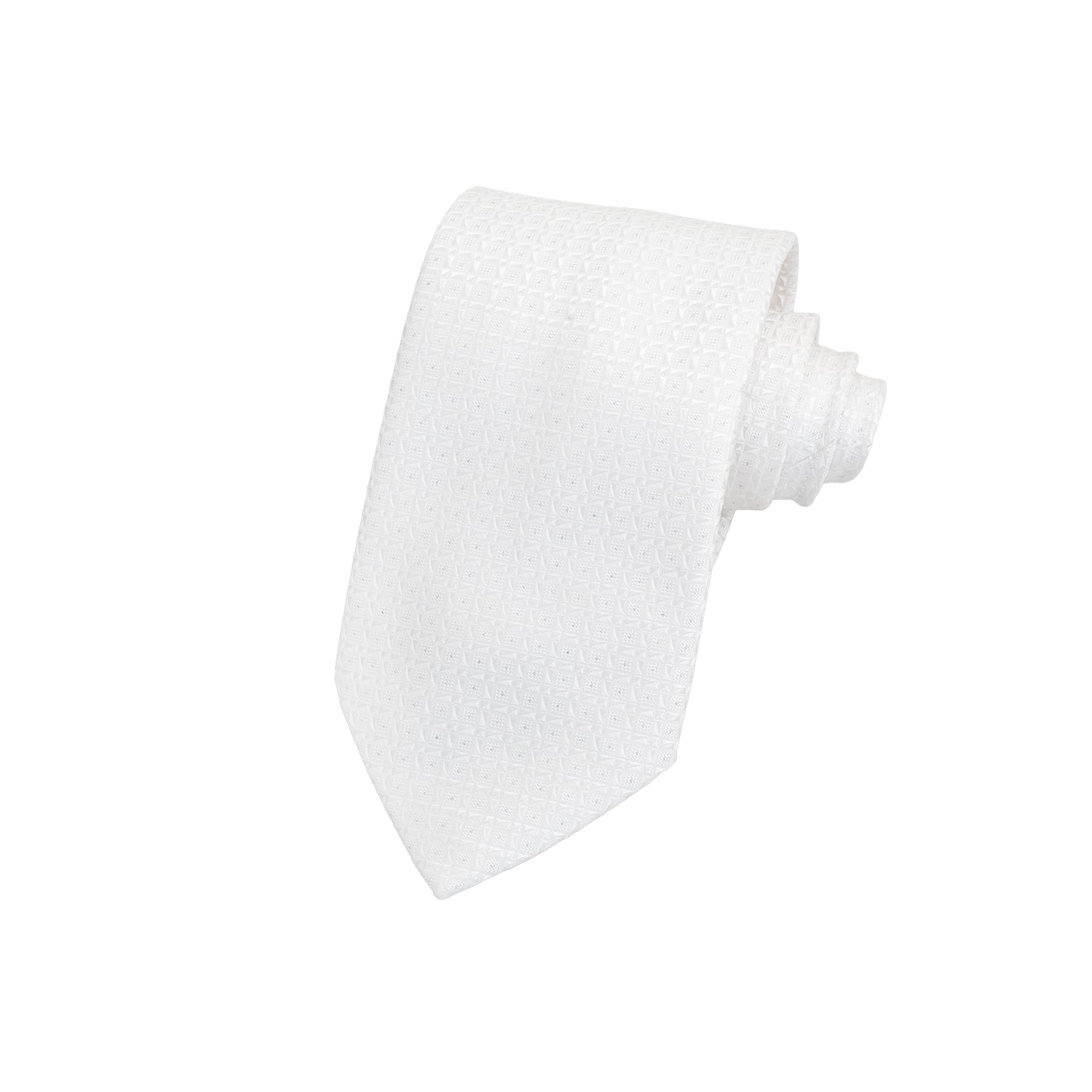 CORBATA 7 PLIEGUES EN SEDA CON MICROPATTERN DE PUNTOS PLATA EN BLANCO